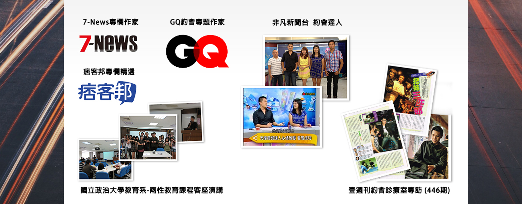 從創始以來,我們總是抱著服務至上、客戶第一的心態經營,並且曾經受到多家媒體採訪(壹週刊446期有完整的專訪), 另外我們的約會教練也曾經在多個網站擔任過專欄作家。 但是我們最引以為傲的是,有許多朋友因我們的服務,獲得了自己想要的愛情和心儀的對象!